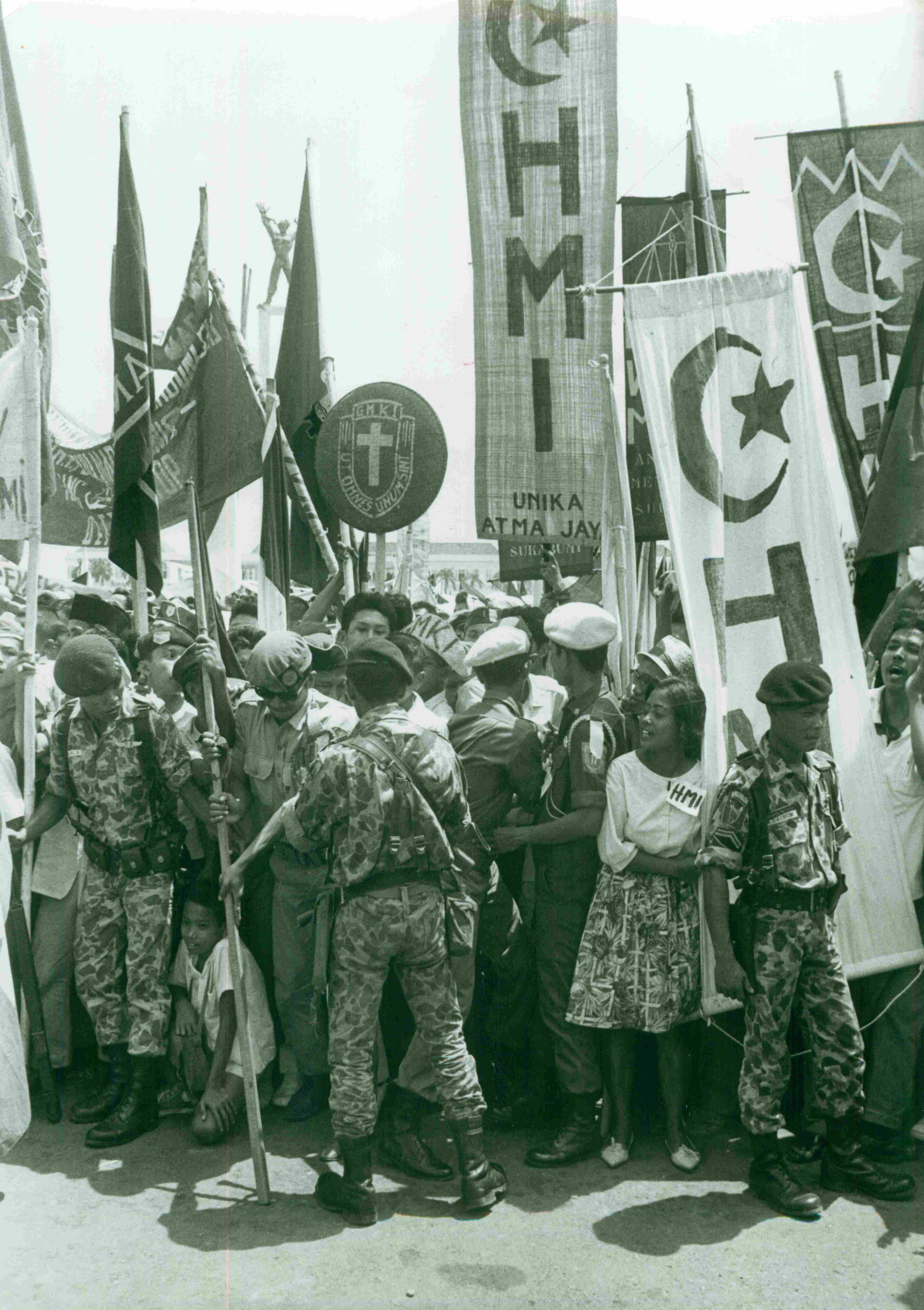Encuadrados por el ejército, los manifestantes musulmanes piden la desaparición del partido comunista.
