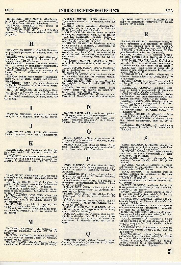 ÍNDICES DE LA REVISTA TRIUNFO |