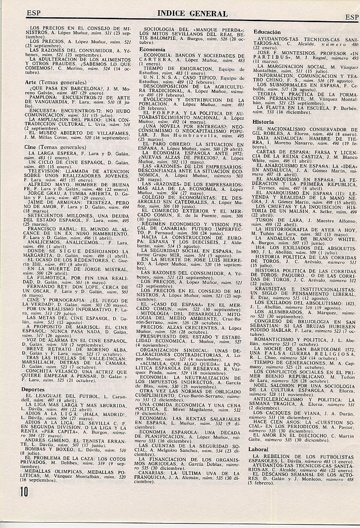 ÍNDICES DE LA REVISTA TRIUNFO |