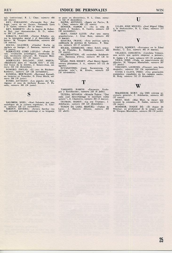 ÍNDICES DE LA REVISTA TRIUNFO |