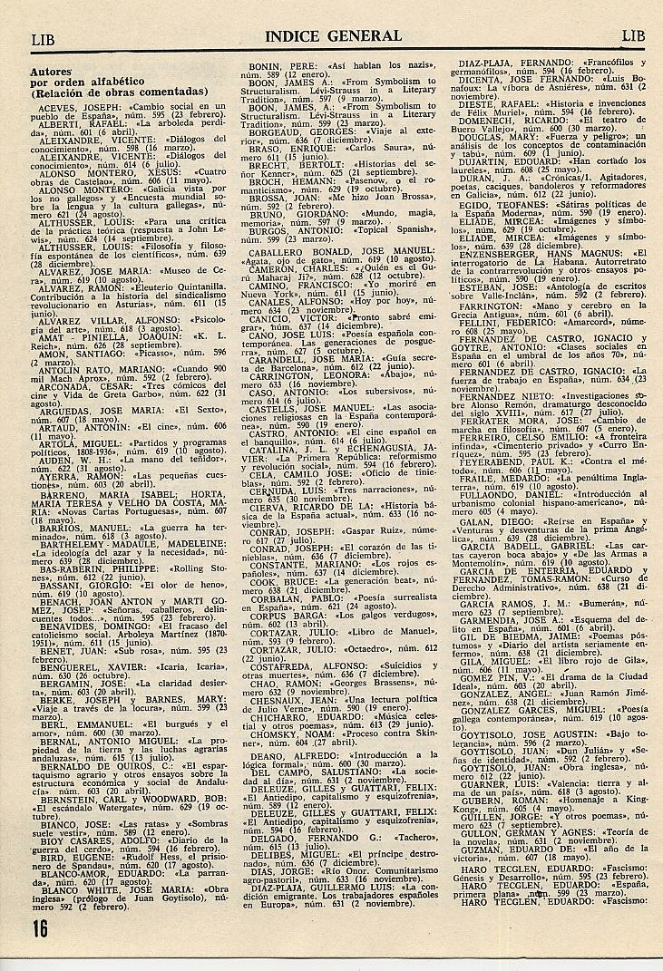 ÍNDICES DE LA REVISTA TRIUNFO |