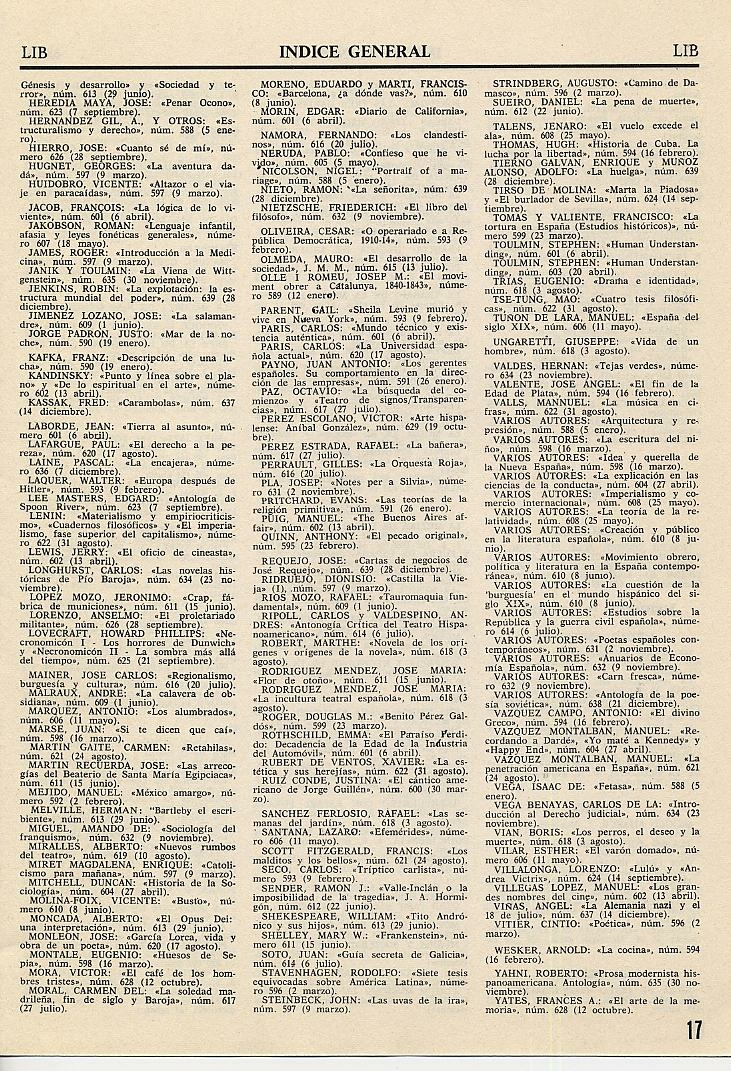 ÍNDICES DE LA REVISTA TRIUNFO |