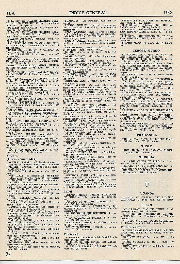 ÍNDICES DE LA REVISTA TRIUNFO |