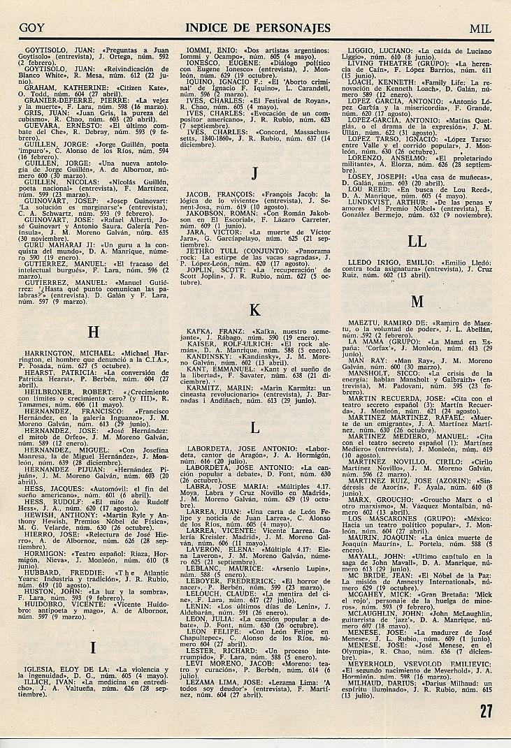 ÍNDICES DE LA REVISTA TRIUNFO |