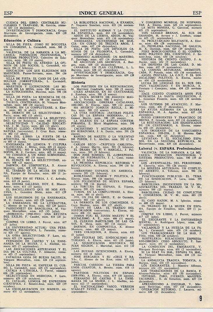 ÍNDICES DE LA REVISTA TRIUNFO |