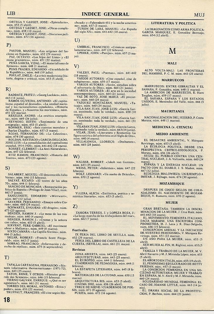 ÍNDICES DE LA REVISTA TRIUNFO |