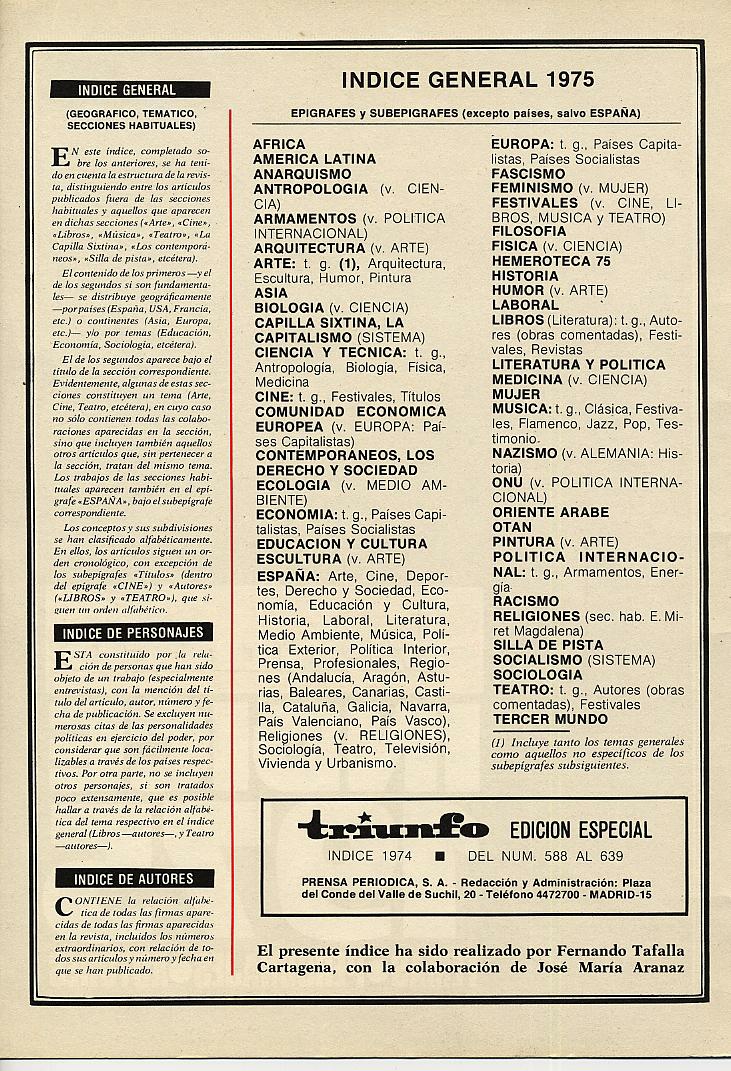 ÍNDICES DE LA REVISTA TRIUNFO |