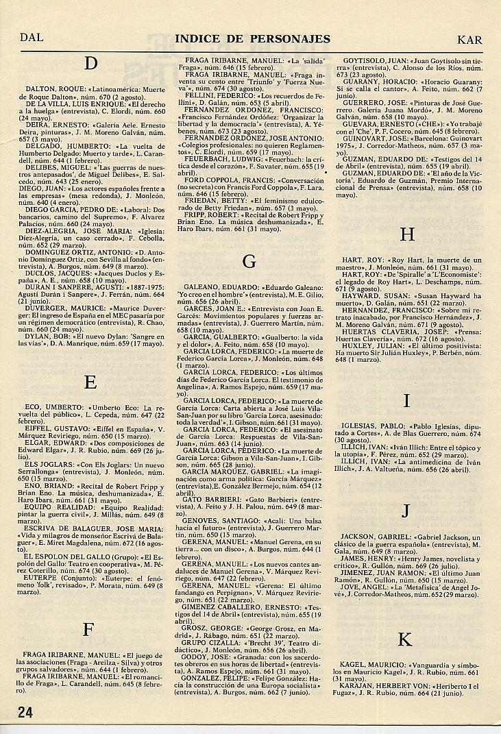 ÍNDICES DE LA REVISTA TRIUNFO |