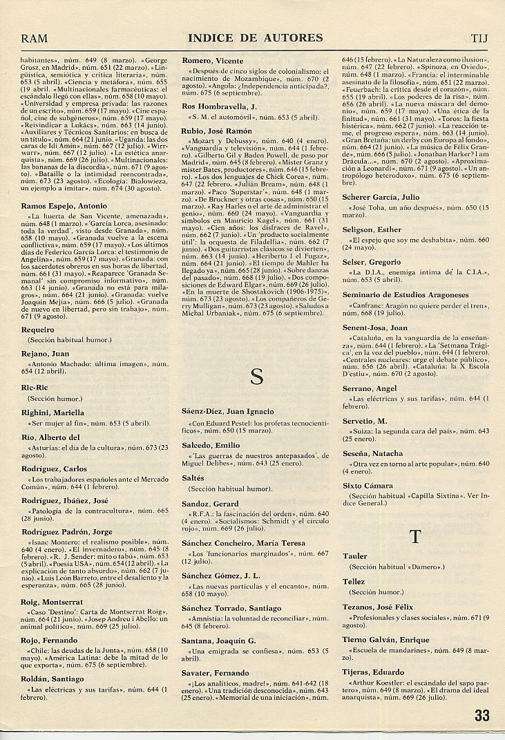 ÍNDICES DE LA REVISTA TRIUNFO |