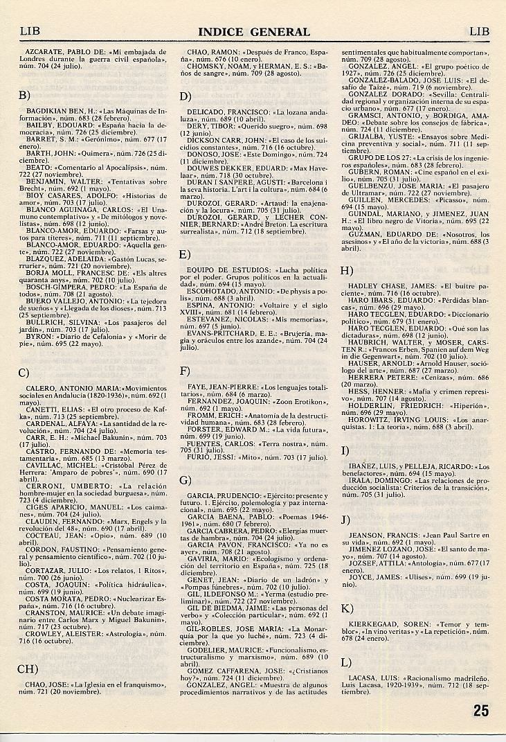 ÍNDICES DE LA REVISTA TRIUNFO |
