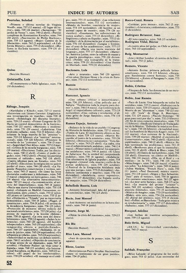 ÍNDICES DE LA REVISTA TRIUNFO |