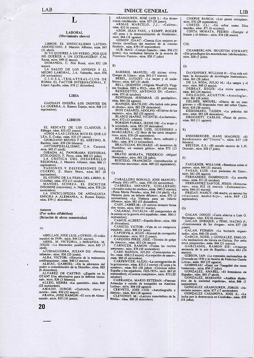 ÍNDICES DE LA REVISTA TRIUNFO |