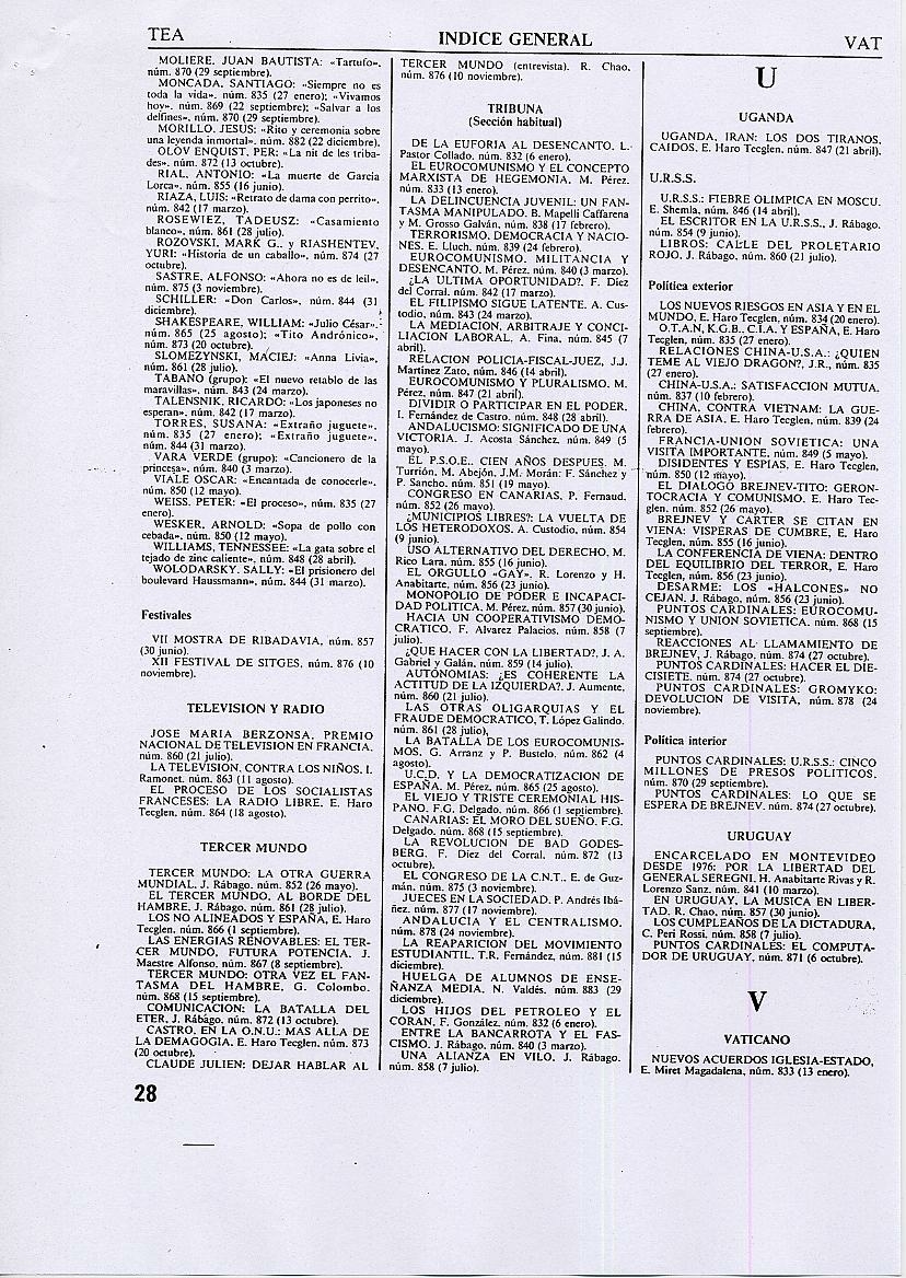 ÍNDICES DE LA REVISTA TRIUNFO |