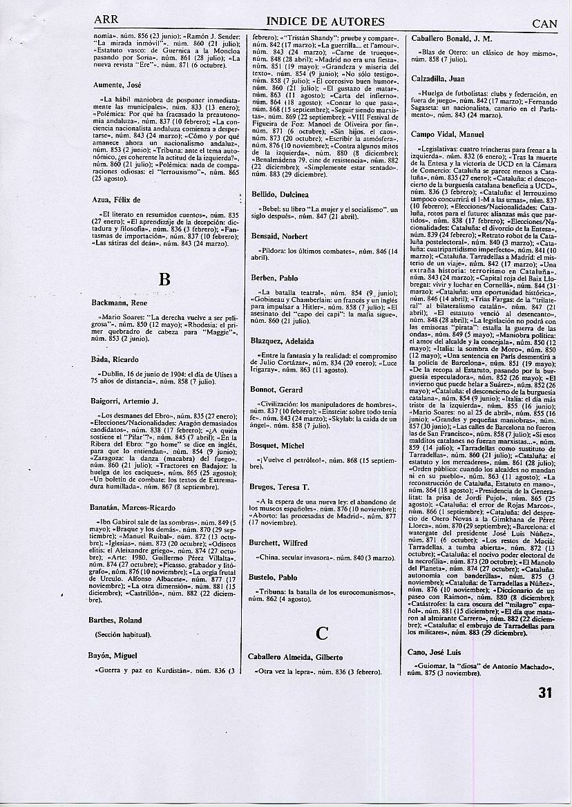 ÍNDICES DE LA REVISTA TRIUNFO |
