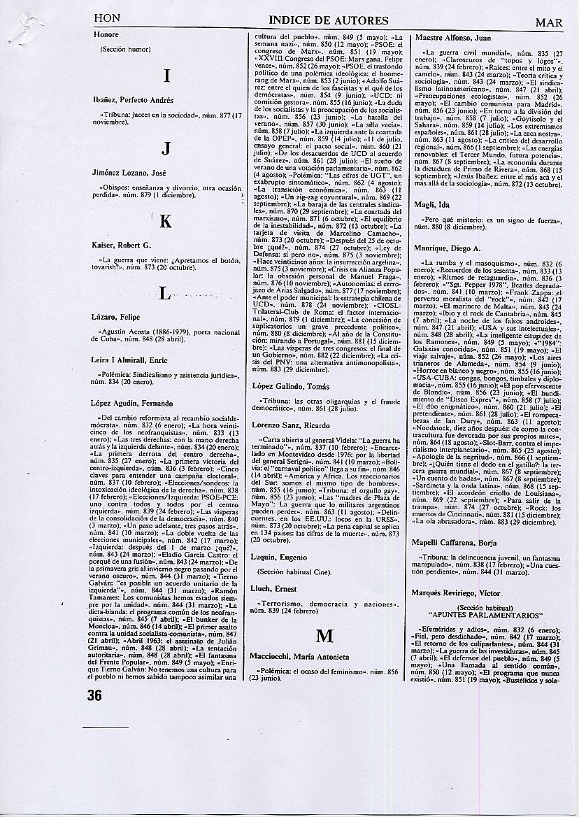 ÍNDICES DE LA REVISTA TRIUNFO |