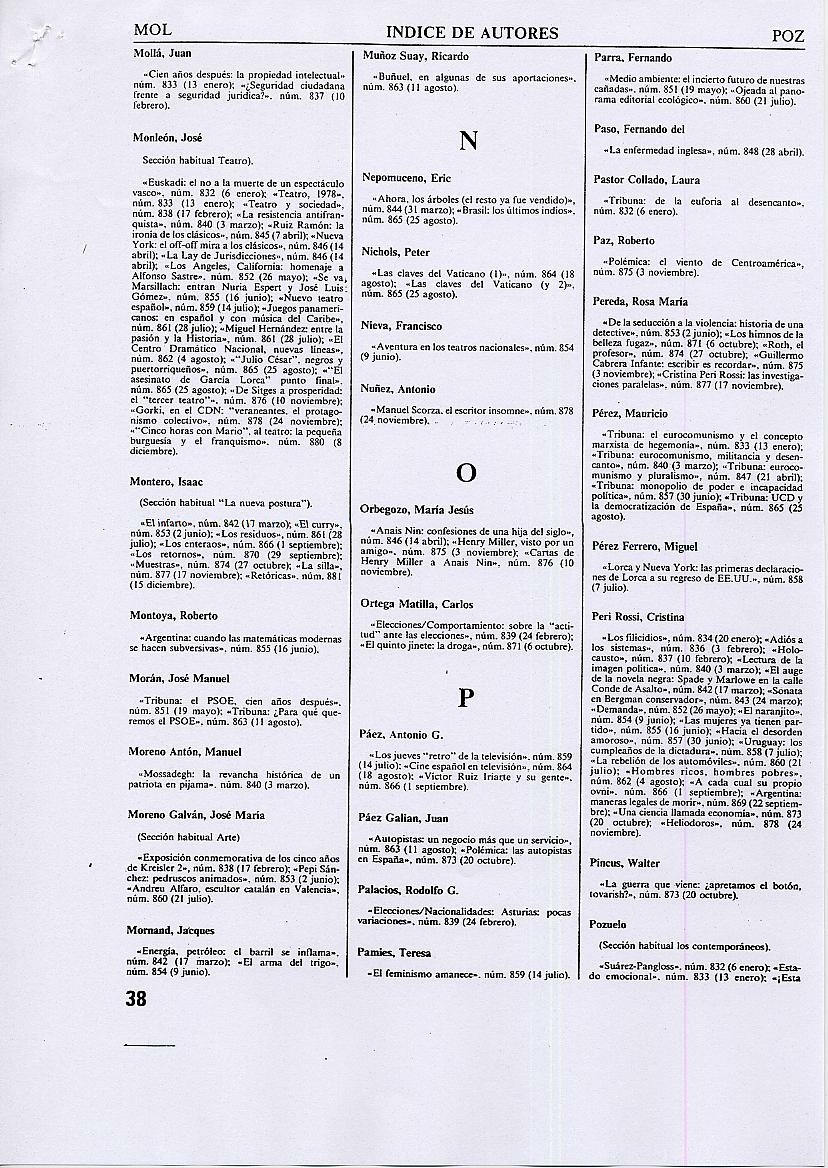 ÍNDICES DE LA REVISTA TRIUNFO |