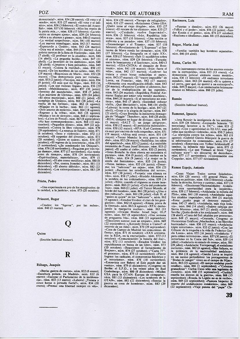ÍNDICES DE LA REVISTA TRIUNFO |